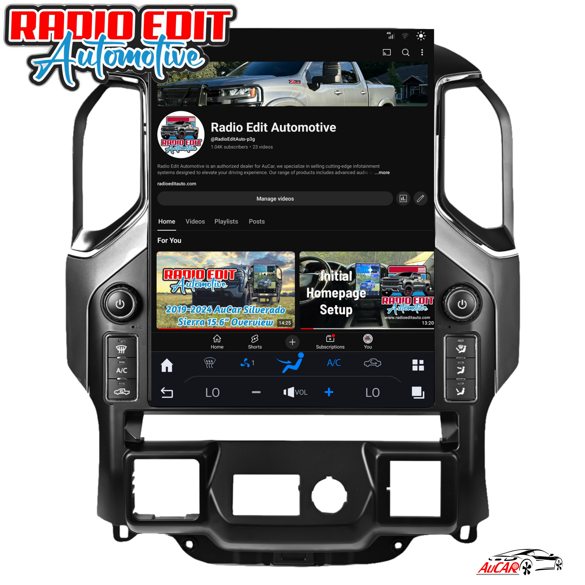 Introducing Aucar's 15.6" Tesla Screen for the Silverado & Sierra – the ultimate upgrade for your vehicle's interior. Say goodbye to the standard boring factory 7" or 8" screen and enjoy a stunning 15.6" crystal-clear display that transforms your driving experience. With an impressive 2K screen resolution and powered by the Android 13 operating system, this display brings vibrant visuals and smooth functionality right to your dashboard.